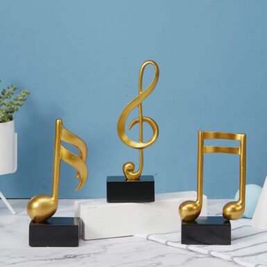 Amoy-Art 3 Stuks Muziek Decor Figuur Muziek Note Sculpture Piano Standbeeld Modern Kunst Voor Huis Cedeau Giftbox Polyresin Goud 19cmH