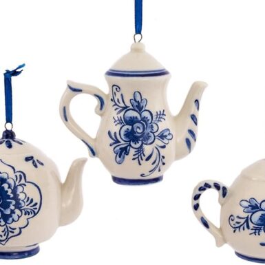 Kurt Adler 2-3 inch Porselein Delfts Blauw Theepot Ornament Set van 3