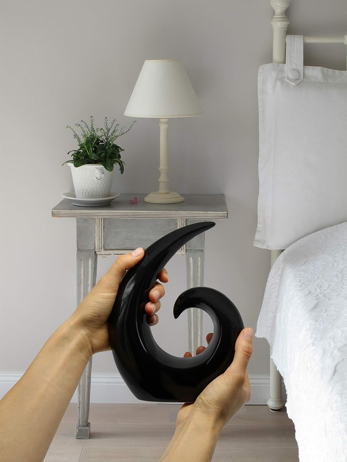 Breng een vleugje moderne elegantie in uw interieur met onze Stijlvolle keramische sculptuur. Deze prachtige decoratieve spiraal, met een hoogte van 20 cm, is vervaardigd uit hoogwaardig zwart keramiek en voegt een eigentijdse uitstraling toe aan elke ruimte. Of het nu op een boekenplank, een tafel of een vensterbank is, deze sculptuur trekt zeker de aandacht en wordt een gespreksonderwerp voor uw gasten.